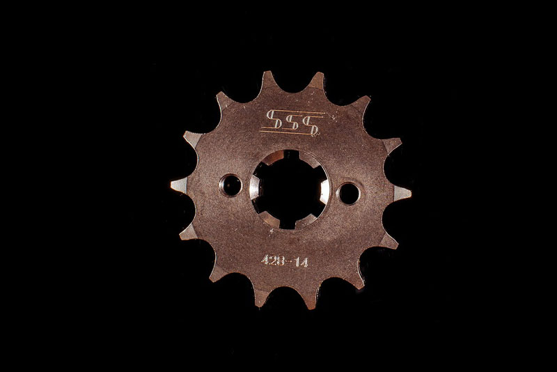 Untuk gir depan juga carbon steel. Tapi, SSS mengandalkan teknologi khusus dari Jepang serta penggunaan baja berkualitas tinggi. Sproket depan yang memberikan umur pemakaian yang lebih lama, bahkan untuk pemakaian sproket yang membutuhkan kekuatan yang lebih besar (heavy duty).
